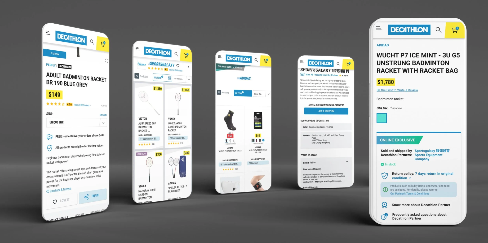 Decathlon Marketplace lets partner brands sell on Decathlon, giving customers more choice. Partner items appear alongside Decathlon’s own products. Brands include Nike, Adidas, YONEX, Wilson, and others to expand range and accessibility.